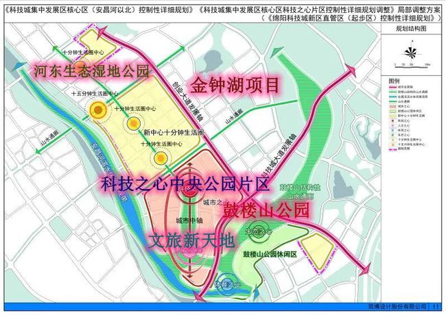 而隔开几个组团的是中央公园景观的城市中轴和中央公园湖(科技湖),西侧则是安昌河滨水休闲景观带,东侧是鼓楼山公园。